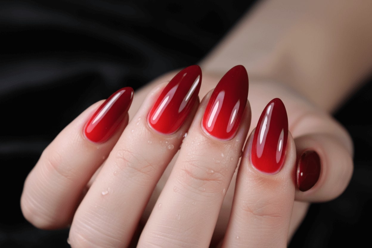 8. Blood red gradient nails with shiny gloss finish