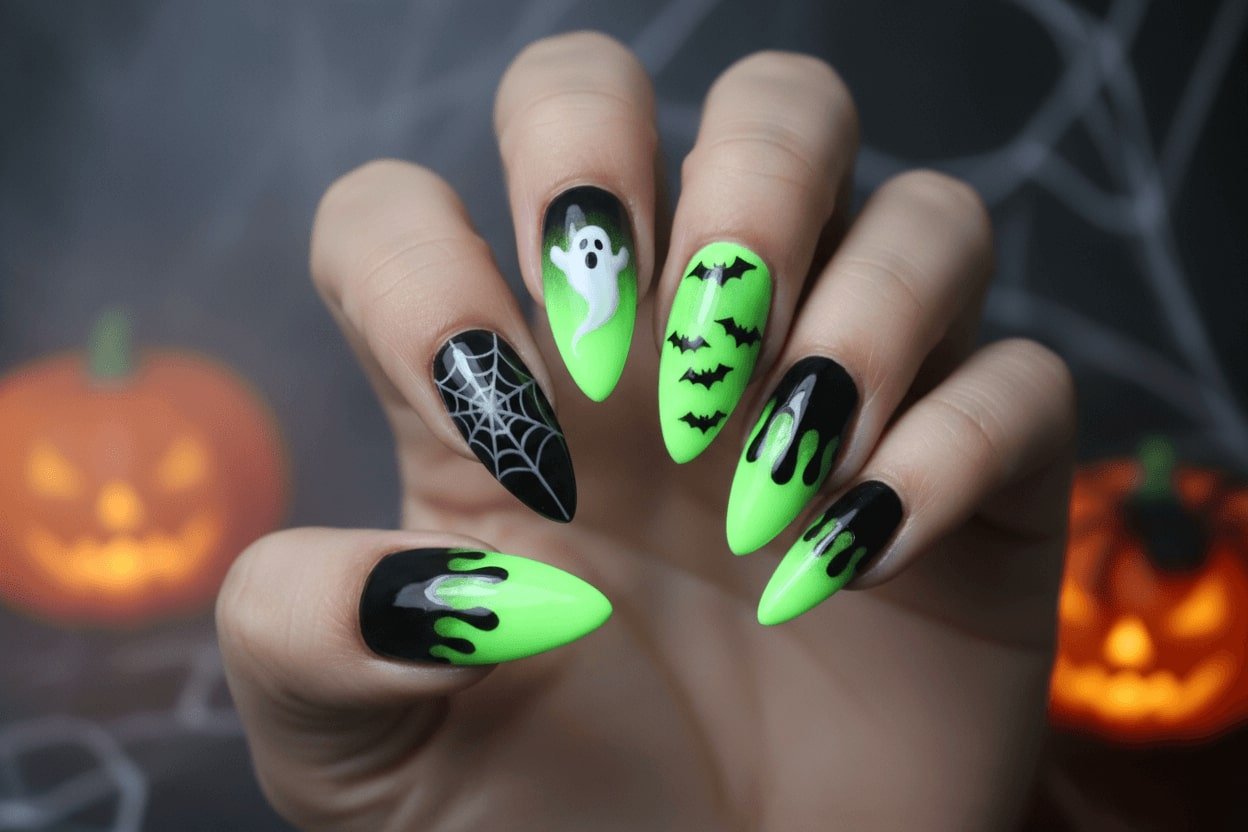 10. Neon green and black ombre nails for a spooky Halloween look