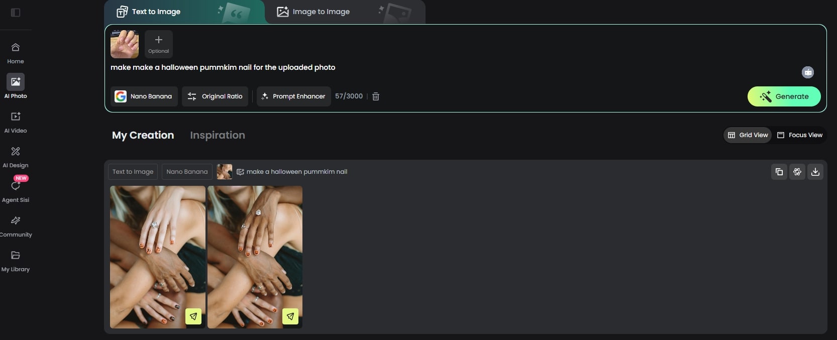 - Step 3: Preview your AI-generated Halloween manicure image, and adjust your prompt until you get the look you love, then save and show off your favorite spooky nail arts.