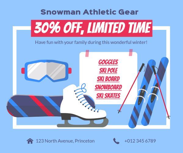 该运动装备销售Facebook帖子由Fotor的设计师制作。点击“使用这个模板”按钮即可开始编辑。使用Fotor的在线设计工具快速修改文字、图片等元素。设计完成,保存并选择心仪的图片格式下载您的设计。无需任何设计经验,轻松在线完成专业设计。