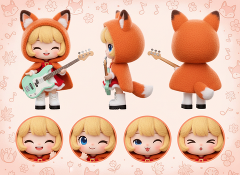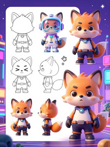 Design Sheet of a Neon Fox Avatar