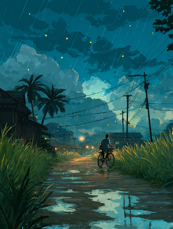 Cinematic Rainy Night in Rural Anime