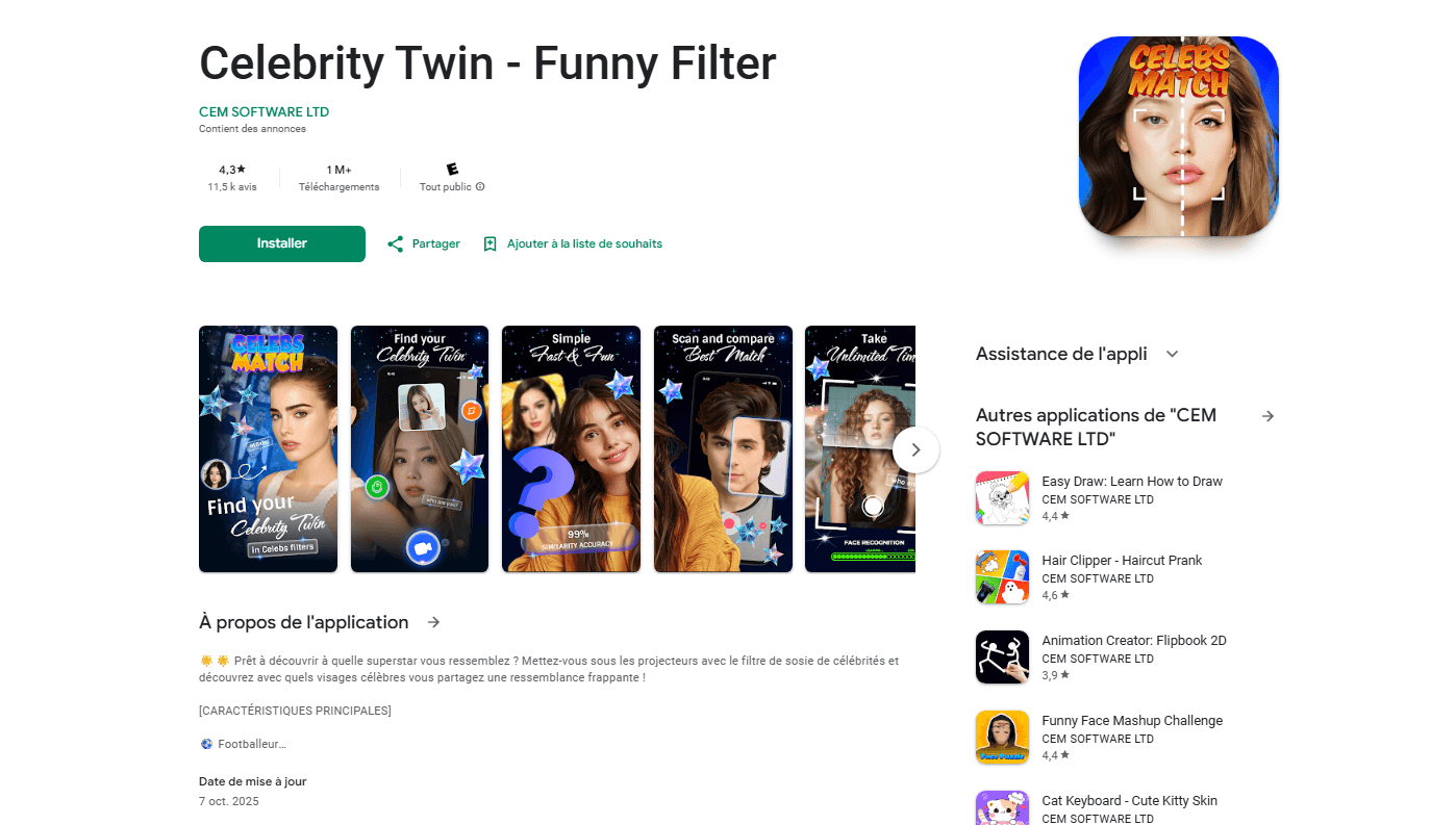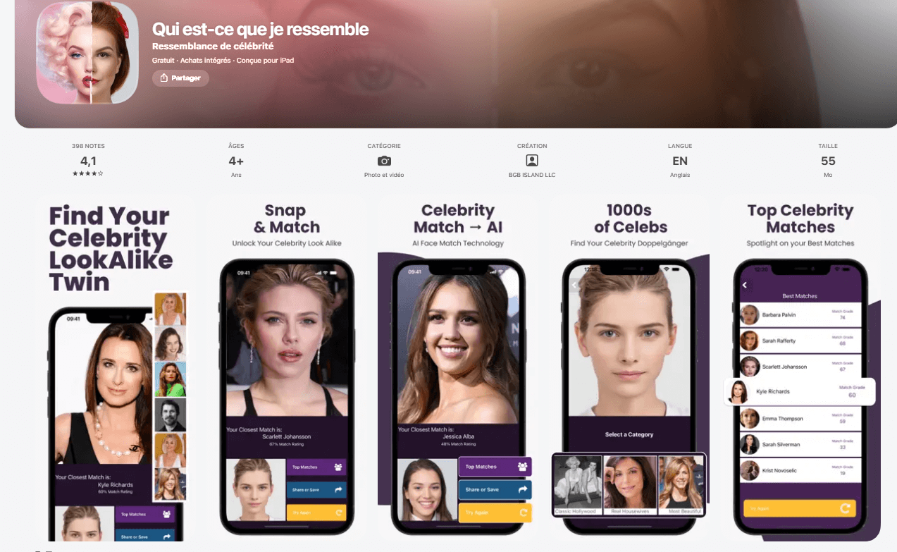 L'un des grands avantages de Celebs, c'est sa stabilité. Vous pouvez tester autant de photos que vous le souhaitez — les vôtres, celles de vos amis ou de votre famille — sans craindre que l'application ne plante. De plus, les résultats sont facilement partageables : en un clic, vous pouvez publier votre sosie sur Instagram ou Snapchat, et inviter vos amis à faire le test eux aussi.