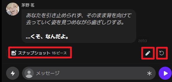 ペンマークで書き換えキャラクターの反応が気に入らなかった場合、ペンマークをクリックしてAIの返答を手動で書き換えることができます。自分好みの展開にカスタマイズ可能です。