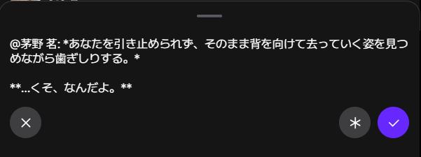 アスタリスク内に新しい人物の設定を追加すると、AIがそれを認識して適切な反応を返してくれます。即興で登場人物を増やしたり、予想外の展開を楽しんだりすることもできます。