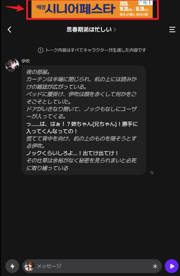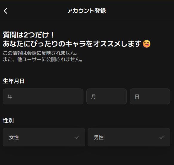 通常のチャットアプリのように、メッセージを送るだけでOK。AIはあなたの送信内容を理解し、設定されたキャラクターの性格や口調に基づいて適切な返答を生成します。単なる定型文ではなく、状況に応じた自然な会話が楽しめます。