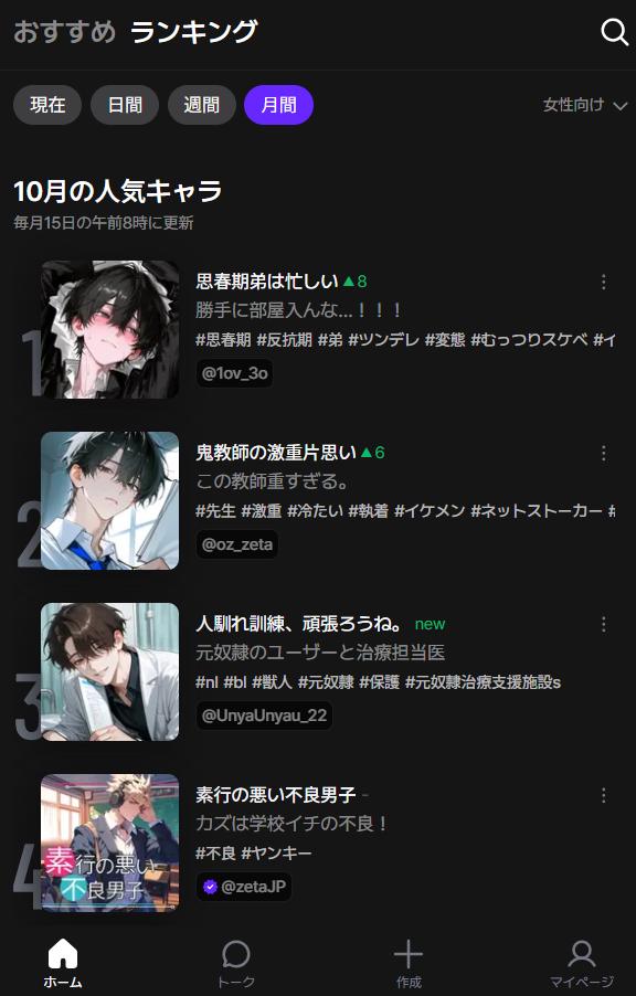 おすすめやランキングで、気に入ったキャラクターを選びましょう。