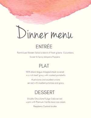 This Dinner Menu Template Menutemplate is created by the talented graphic designers at Fotor. Click “Use this template”to start editing online. Change the text, images and more the exact way you wish using drag-and-drop editing tools. No design skills required with Fotor. Create stunning designs right in your web browser.