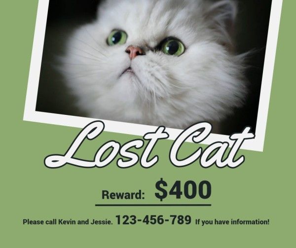 Green Lost Cat Search Notice Facebook Post Template
