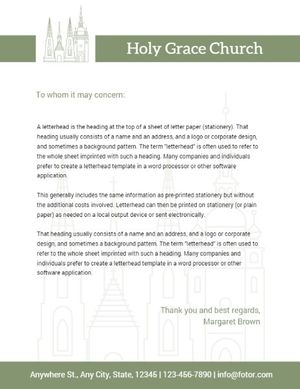 This White And Green Church Letter Letterhead Template Letterheadtemplate is created by the talented graphic designers at Fotor. Click “Use this template”to start editing online. Change the text, images and more the exact way you wish using drag-and-drop editing tools. No design skills required with Fotor. Create stunning designs right in your web browser.