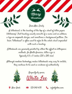 This White Christmas Letter Letterhead Template Letterheadtemplate is created by the talented graphic designers at Fotor. Click “Use this template”to start editing online. Change the text, images and more the exact way you wish using drag-and-drop editing tools. No design skills required with Fotor. Create stunning designs right in your web browser.